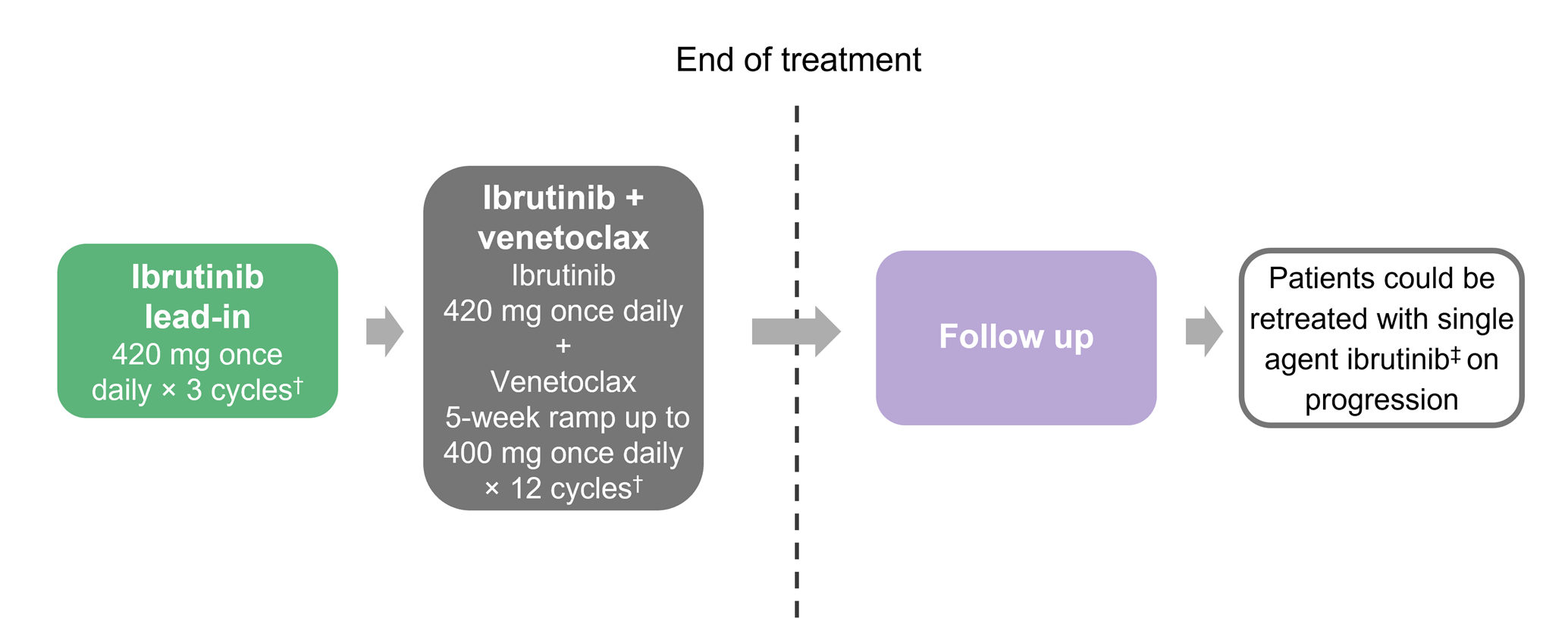 ‡Or FD ibrutinib + venetoclax if they had durable response.
