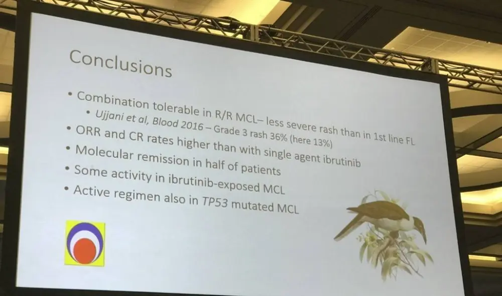 Mats Jerkeman ended his talk by concluding that this ibrutinib-lenalidomide-rituximab combination therapy, in R/R MCL patients was well-tolerated, active and associated with molecular remission via both blood and bone marrow assessment.