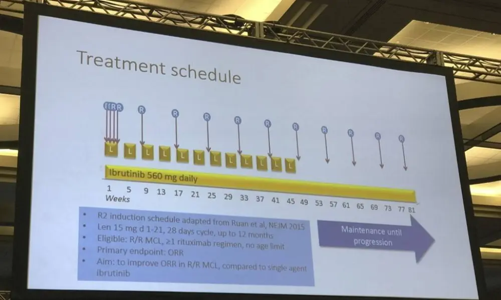 The 58th Annual Meeting & Exposition of the American Society of Hematology’s (ASH) took place in San Diego, CA, and on December 3rd, Mats Jerkeman, from Skåne University Hospital, Lund, Sweden, presented results from a multi-center, open-label, phase-II trial which examined the safety and efficacy of a triple combination therapy of ibrutinib-lenalidomide-rituximab in R/R MCL patients. The inclusion criteria were MCL patients R/R after rituximab containing treatment, with measurable disease and WHO PS 0–3.