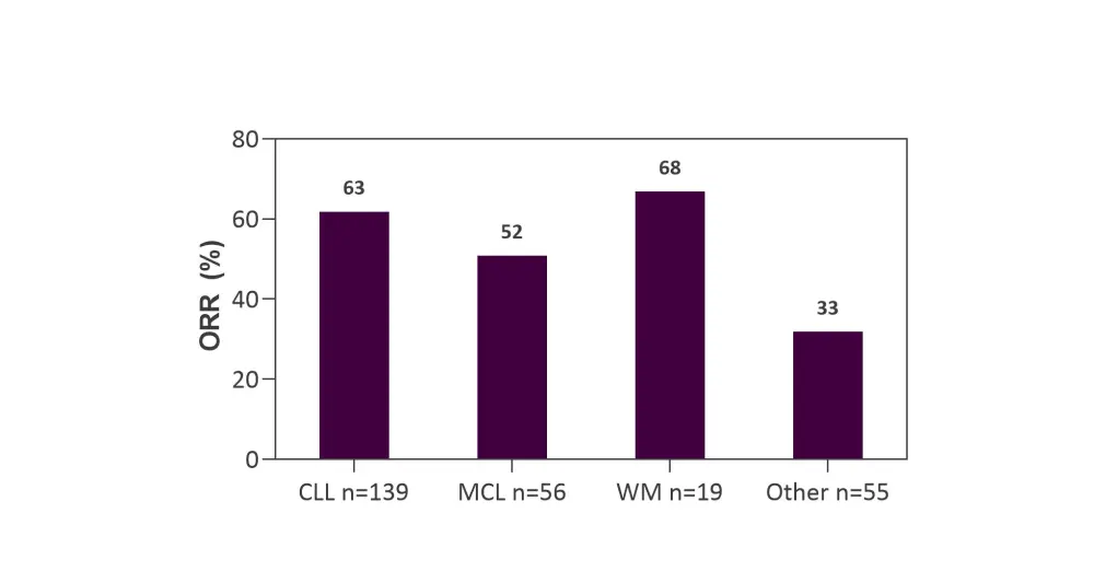 CLL, chronic lymphocytic leukemia; MCL, mantle cell lymphoma; ORR, overall response rate; WM, Waldenström’s macroglobulinemia.