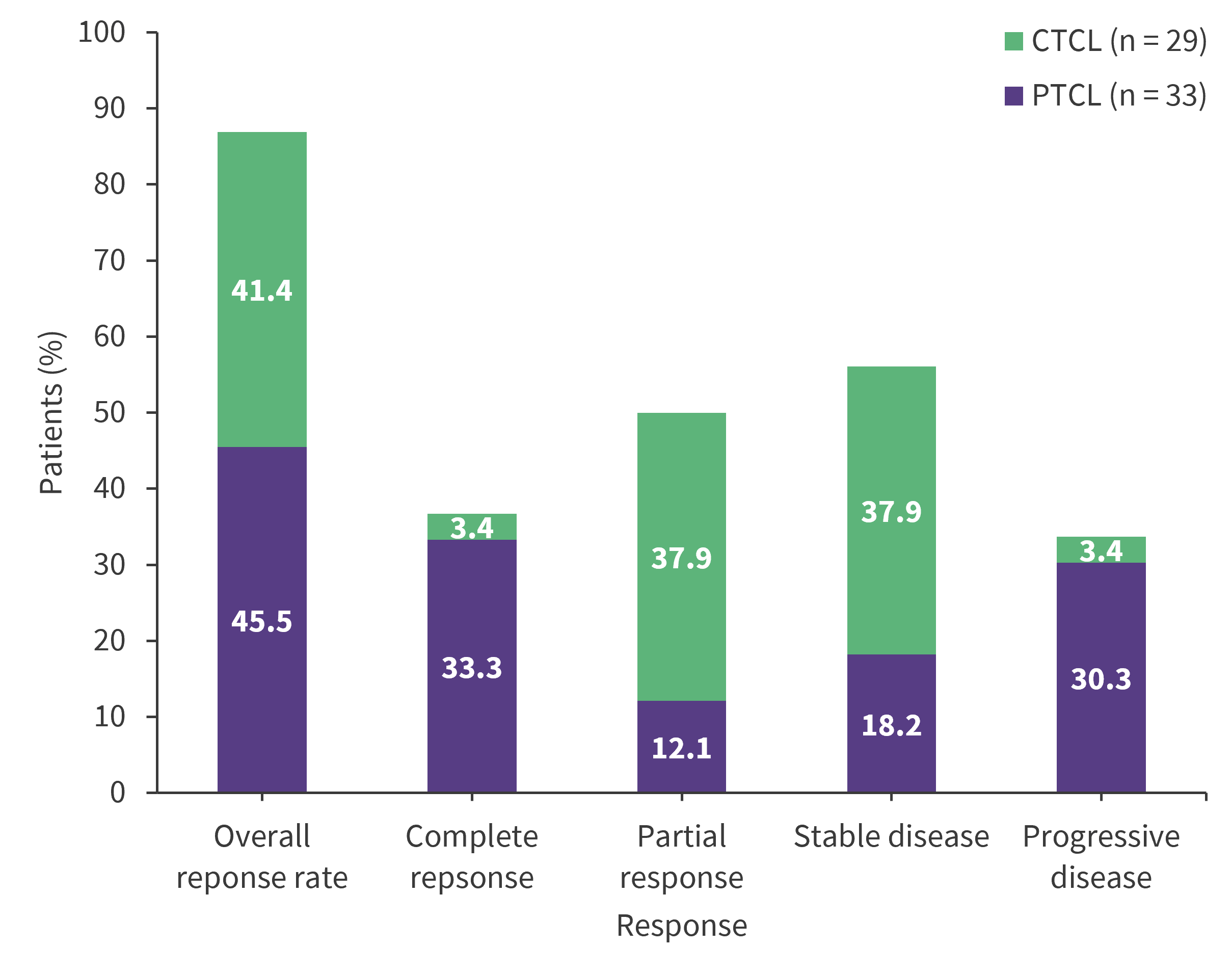 Response rates for the PTCL and CTCL cohorts are shown in Figure 1.