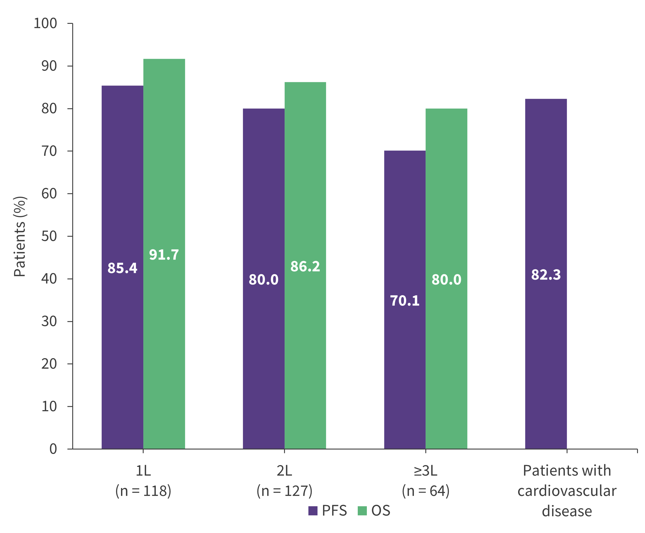 Median PFS was not reached, and 2-year survival outcomes are shown in Figure 5.