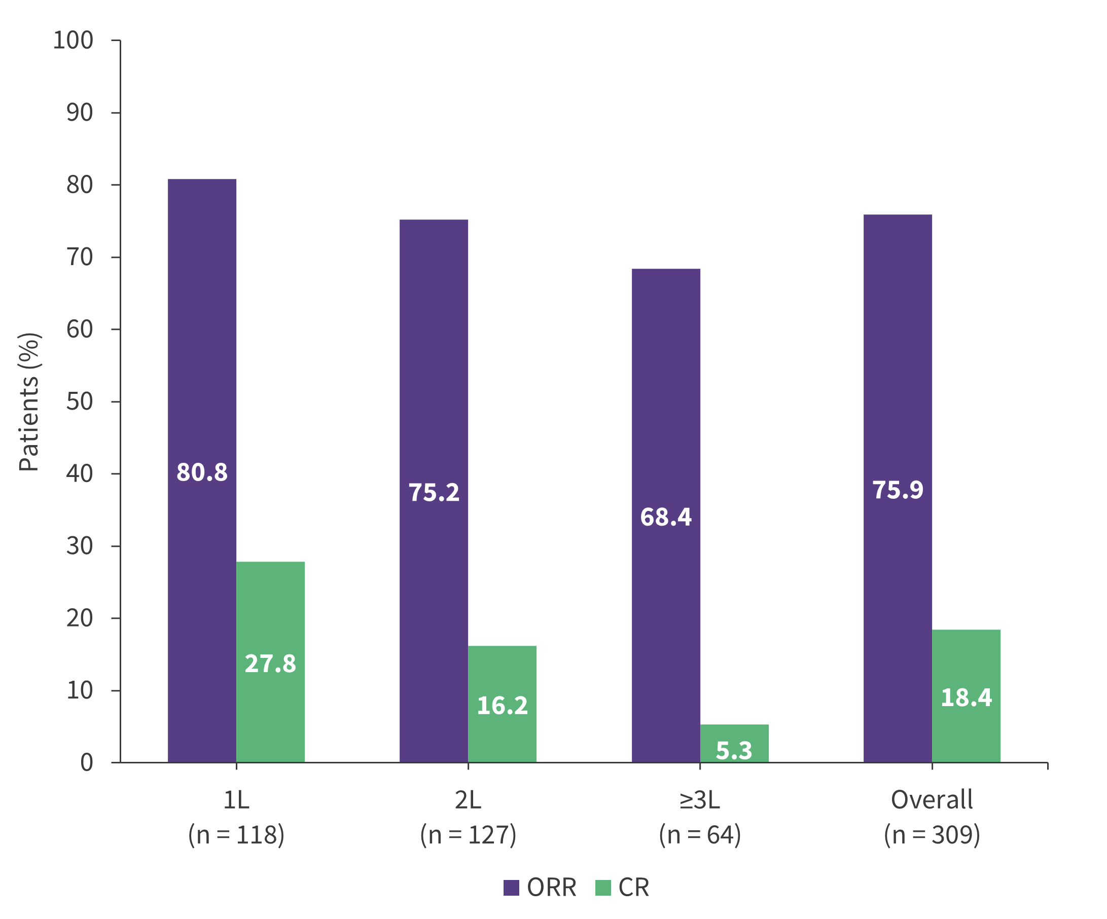 1L, first-line; 2L, second-line; 3L, third-line; CR, complete response; ORR, overall response rate.