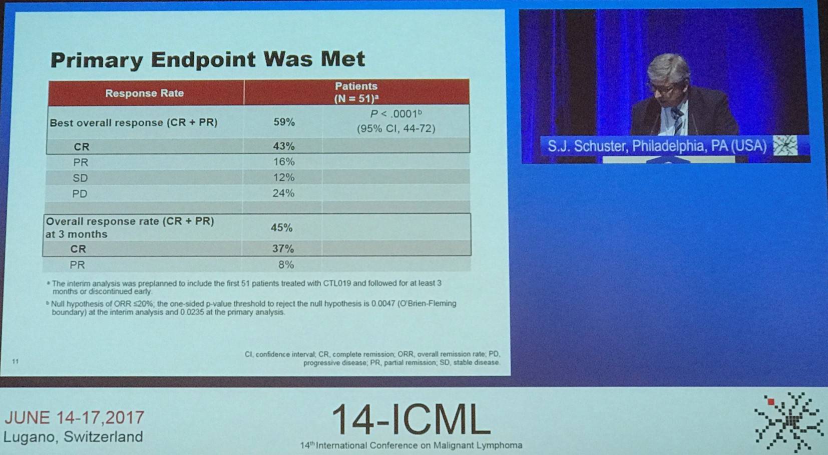 The first talk in this session was given by Stephen J. Schuster, MD, from the Perelman School of Medicine, University of Pennsylvania, Philadelphia, Pennsylvania, USA, and was focused on interim analysis of the JULIET study (NCT02445248).