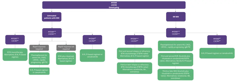 Figure 6. Treatment options for patients with de novo WM and R/R WM based on genotyping*
